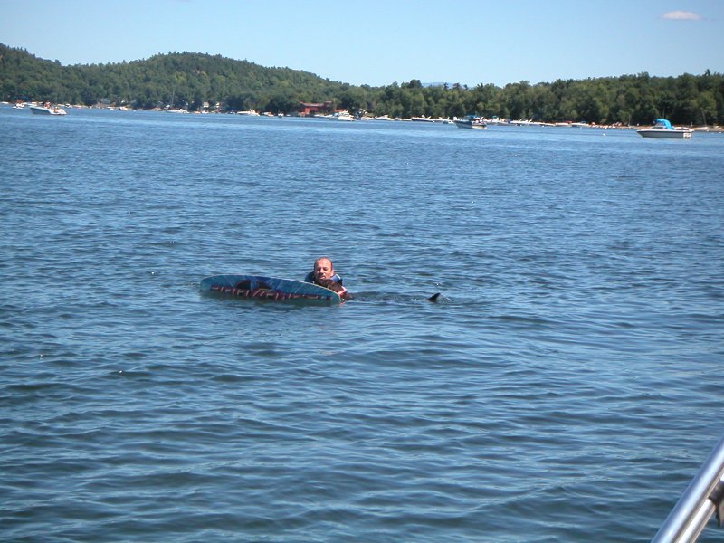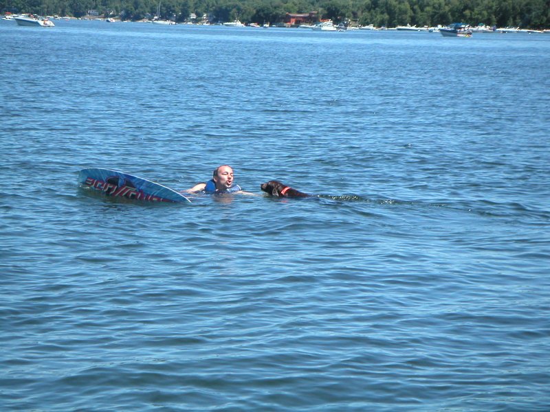 Nestle helping Tracy with his wakeboard. NOT!