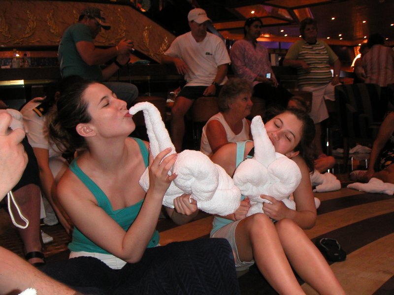 Mandi and Gina loving their new towel frineds they just made.