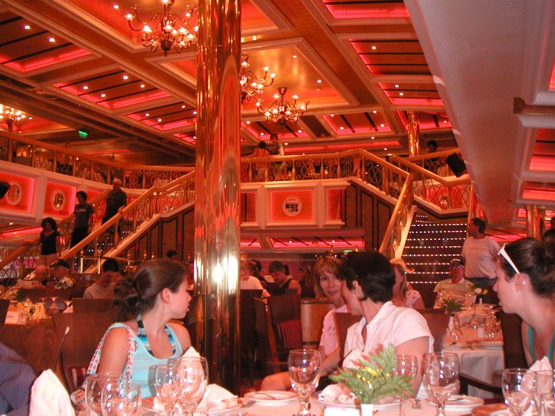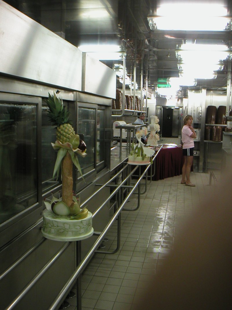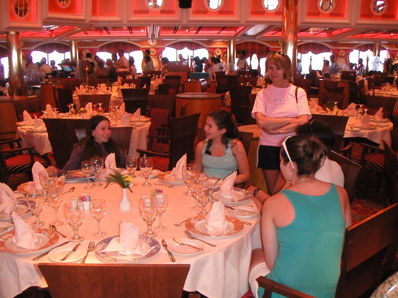 Waiting in the dining room before our galley tour.