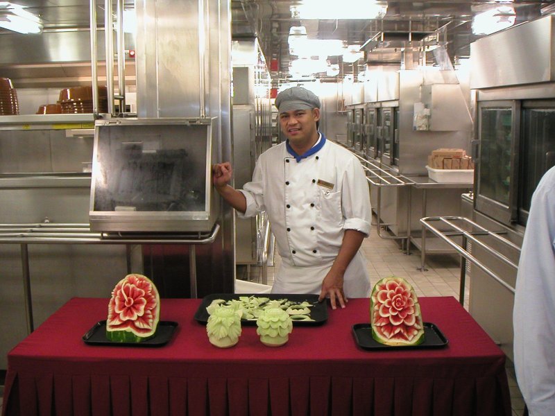 One of the chefs showing us his handy work.